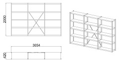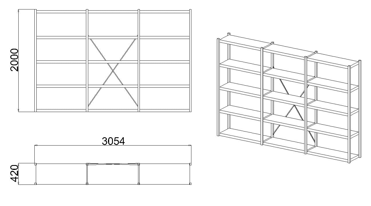 - Wymiary całkowite (wysokość x szerokość x głębokość): 2000 x 3000 x 400 mm (3 × moduł 1000 mm na wspólnych słupach)