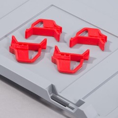 Komplet 4 Klipsów do pokryw w kolorze czerwonym o wymiarze 40x10x36 mm.
