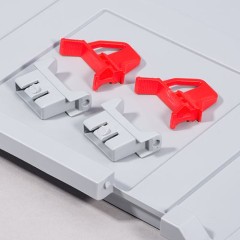 Komplet Klipsów z zawiasami do pokryw w kolorze czerwonym o wymiarach 40x13x30 mm.