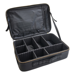 Walizka kosmetyczna XXL czarno-złota 380x270x80 mm – elegancka walizka kosmetyczna z przegródkami i paskiem na ramię