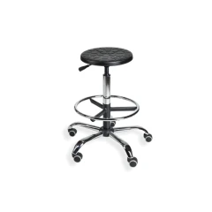 PurTab Chrome H+RING WH to funkcjonalny i wygodny taboret przemysłowy, wyposażony w kółka oraz podnóżek RING. Dzięki siedzisku wykonanemu z pianki integralnej, odpornym na chemikalia i uszkodzenia mechaniczne, taboret sprawdzi się w wymagających warunkach pracy.